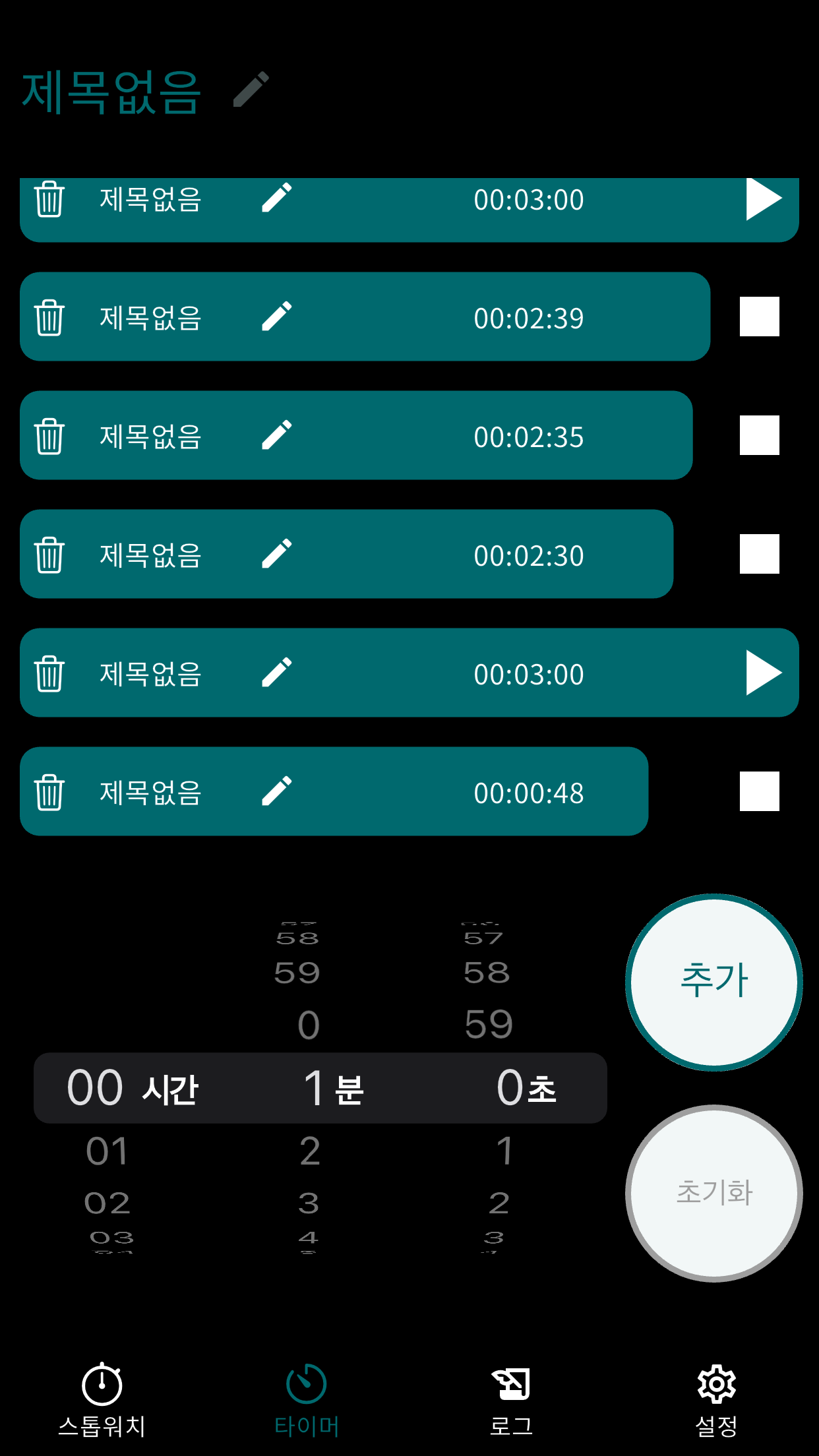 - 타이머세트는 초기화시 로그의 타이머 탭에 저장되며, 로그를 클릭하여 해당 타이머 세트를 불러올 수 있습니다.