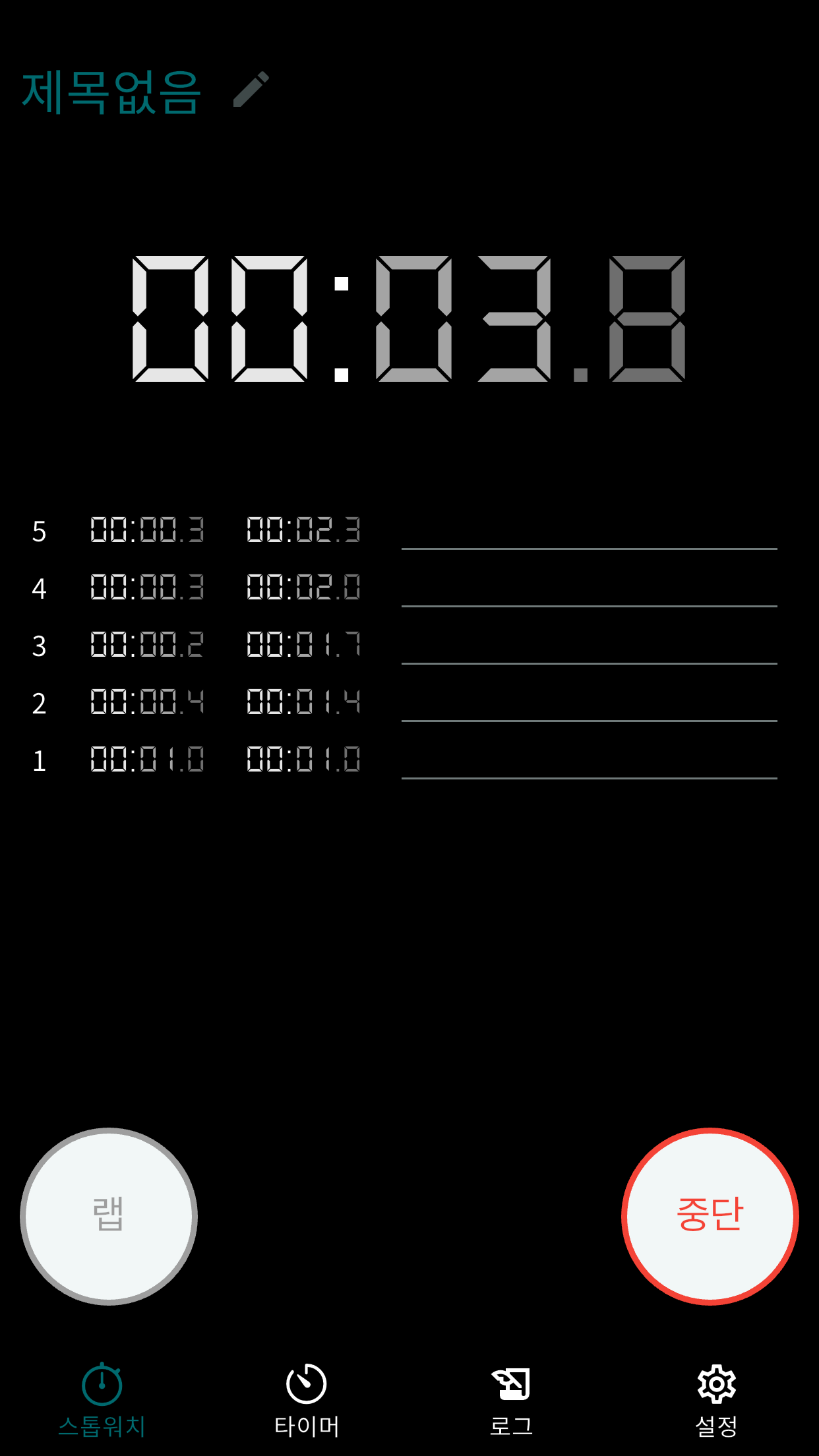 - 스탑워치 화면에서 상단 '제목없음'을 클릭하여 제목을 부여할 수도 있습니다.