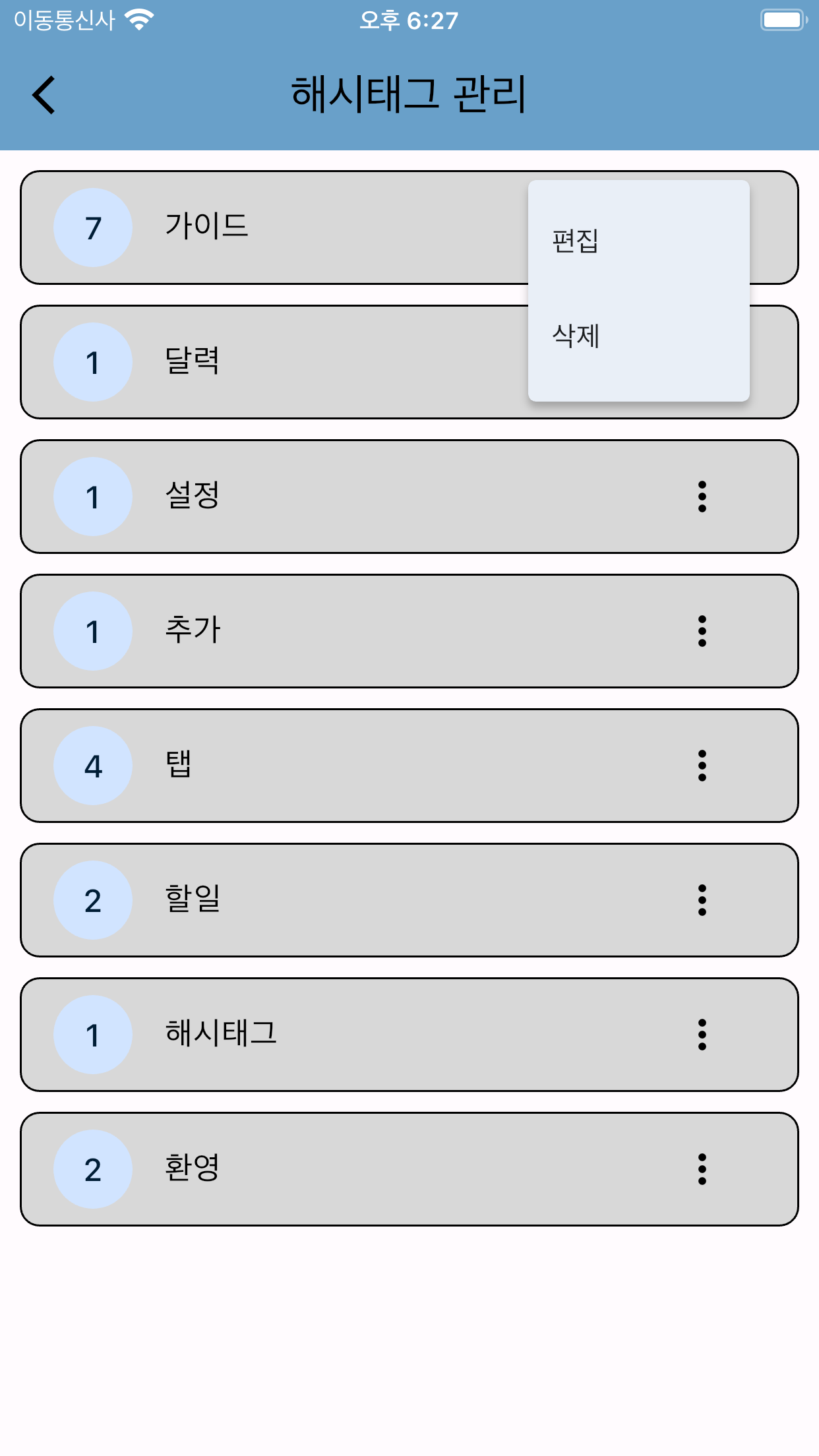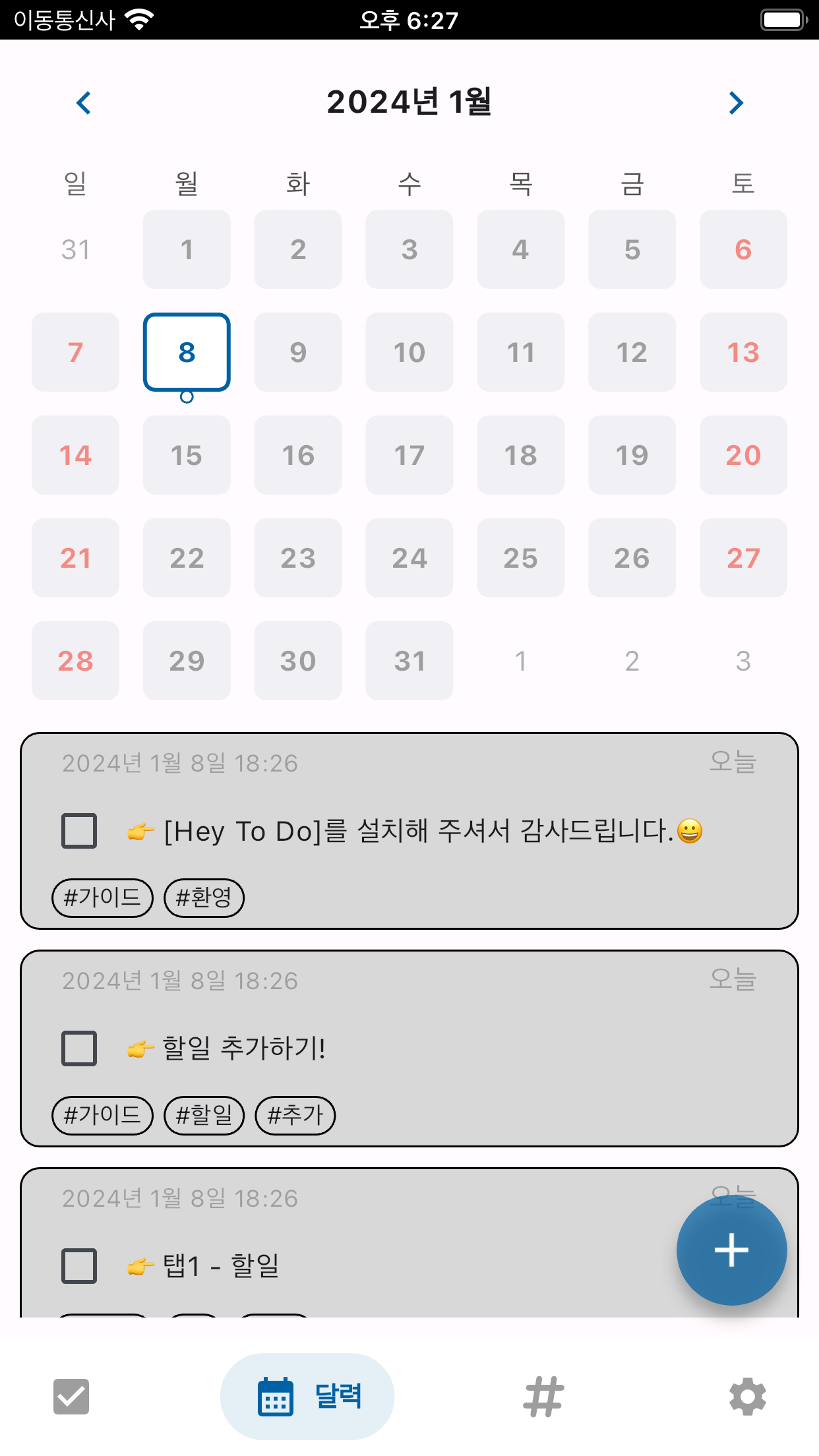 할일을 등록하면 등록한 [할일]을 [캘린더]와 [해시태그]로 분류하여 관리할 수 있습니다.
