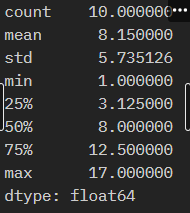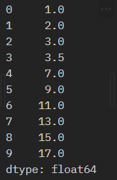 values = [1,2,3,3.5,7,9,11,13,15,17] s1 = pd.Series(values) s1