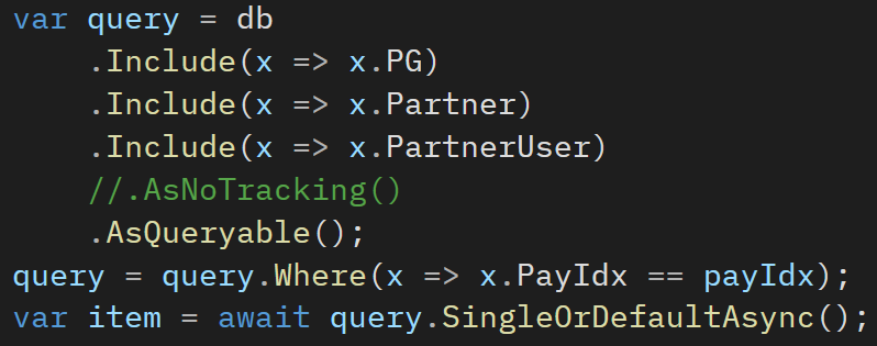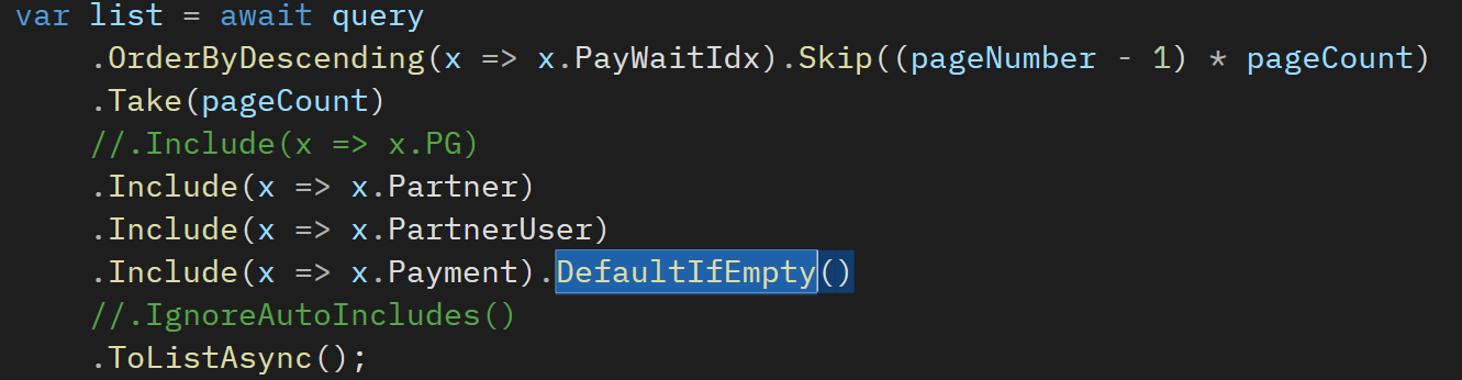 위에서 보여지는 Payment값은 Nullable이 가능한 left join 형식으로 값을 가져옵니다.